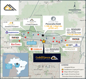 GoldHaven Resources Corp. is a Canadian junior exploration Company focused on acquiring and exploring highly prospective land packages in North and South America. The Company’s projects include (i) the flagship Magno Project, a district-scale polymetallic property adjacent to the historic Cassiar mining district in British Columbia; (ii) the Three Guardsman Project, which exhibits significant potential for copper and gold-skarn mineralization; (iii) the Copeçal Gold Project, a drill-ready gold project located in Mato Grosso, Brazil with a 6km strike of anomalous gold in soil samples; and (iv) three critical mineral projects with extensive tenement packages totalling 123,900 hectares: Bahia South, Bahia North and Igautu projects located in Brazil.